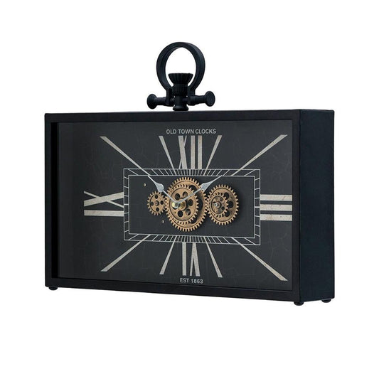 13" Black and Gold Metal and Glass Analog Vintage Style Crackle Wall Clock