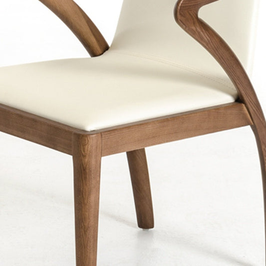 White and Brown Upholstered Faux Leather Curved Back Dining Arm Chair